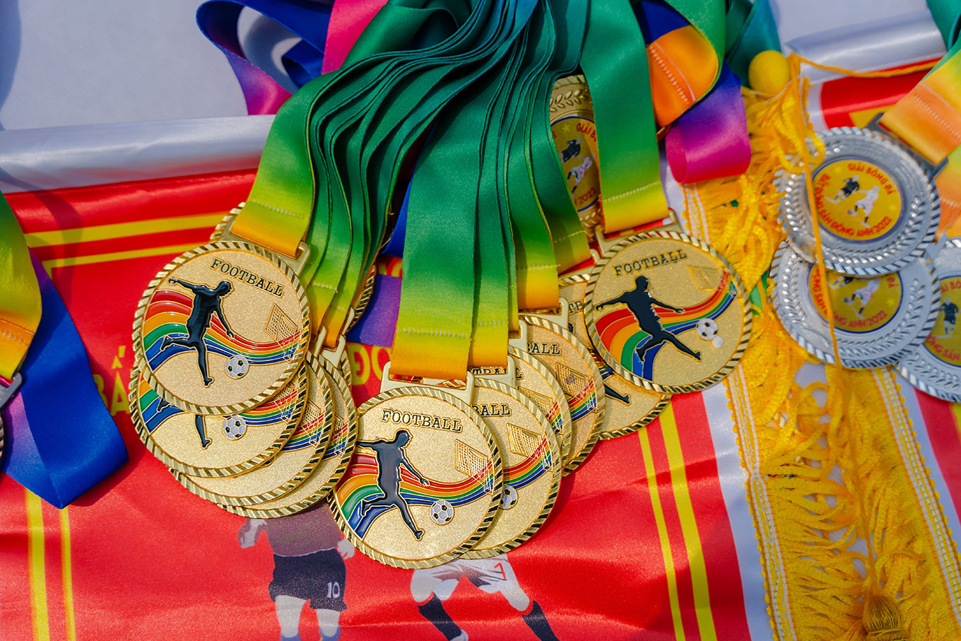 Về cơ cấu giải thưởng, ngoài đội vô địch (cúp vàng và huy chương vàng) cùng hai đội huy chương bạc, huy chương đồng, giải bóng đá còn có các giải thưởng phụ dành cho cầu thủ xuất sắc nhất, thủ môn xuất sắc nhất. Bên cạnh giải dành cho các cầu thủ, còn có các giải cần sự đóng góp, cổ vũ của các cổ động viên là giải fair play, giải cống hiến.